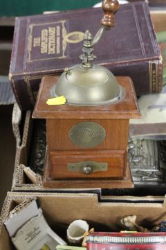 TWO TRAYS OF ASSORTED COLLECTABLES TO INCLUDE A COFFEE GRINDER ETC