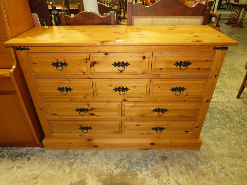 A MODERN PINE BANK OF TEN DRAWERS W-118 CM