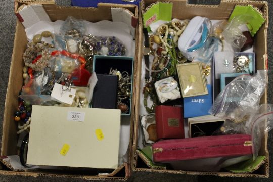 TWO TRAYS OF VINTAGE COSTUME JEWELLERY, MODERN WATCH ETC