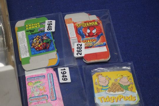 A COLLECTION OF ASSORTED CANDY CANE BOXES MAINLY MARVEL,together with Bubble Gum wrappers Smarties Boxes etc