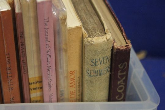 A BOX OF MISCELLANEOUS BOOKS, to include 24 volumes of the private library, Puck in Petticoats by Grace Richardson, Royal academy illustrated etc