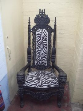 A MODERN THRONE CHAIR WITH ZEBRA MARKINGS