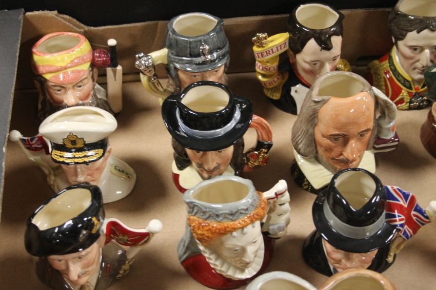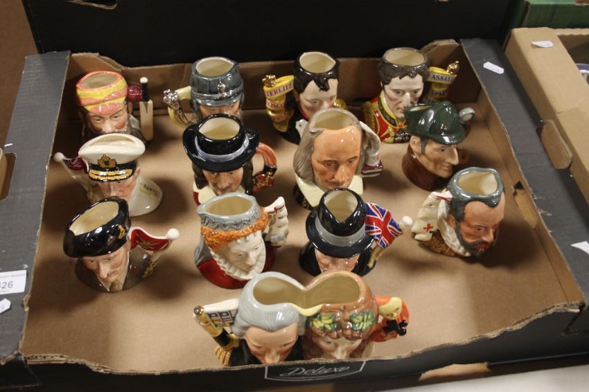 A TRAY OF ROYAL DOULTON MINIATURE CHARACTER JUGS
