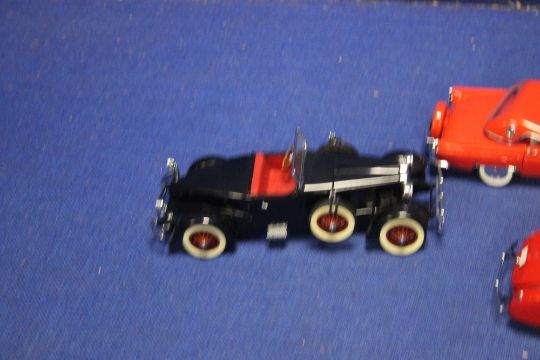 THREE DANBURY MINT CARS TO INCLUDE RED FORD THUNDERBIRD, RED FORD DE-LUXE COOPE AND A BLACK HAWK