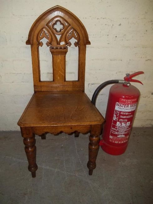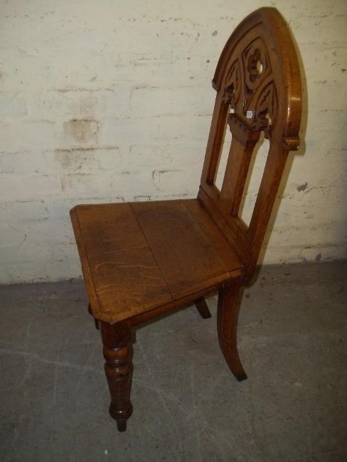 AN OAK GEORGIAN GOTHIC REVIVAL CHAIR