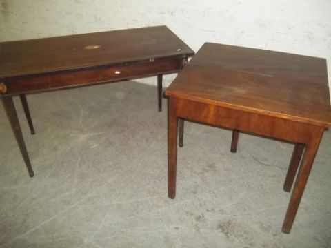 TWO ANTIQUE TABLES 1 INLAID CROSS BANDED TABLE AND AN ANTIQUE FLIP OVER OCCASSIONAL SOFA TABLE BOTH A/F