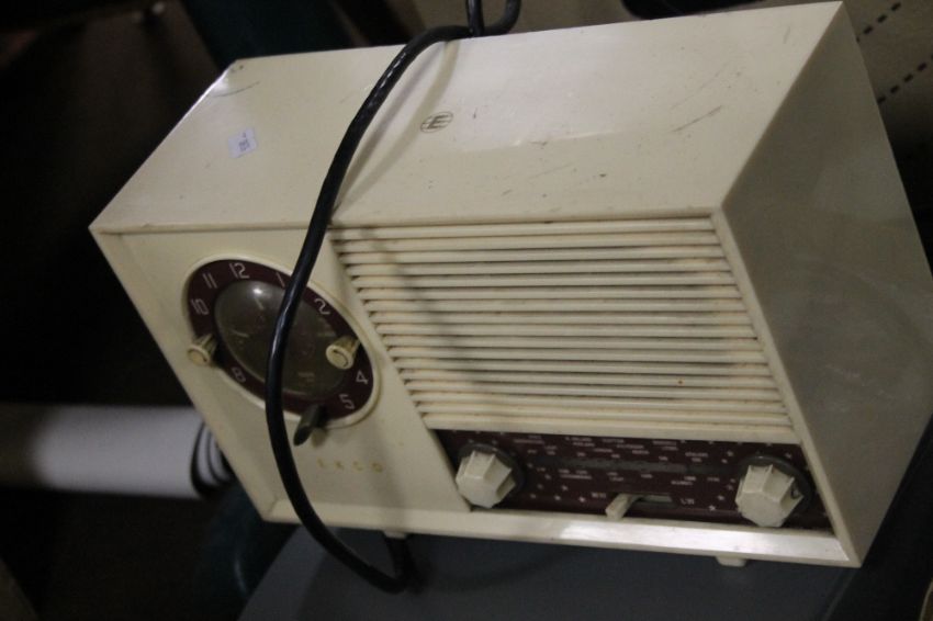 A VINTAGE EKCO RADIO TOGETHER WITH A TYPEWRITER ETC