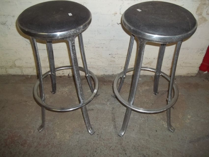 TWO RETRO ALUMINIUM CAST DESIGNER BAR STOOLS