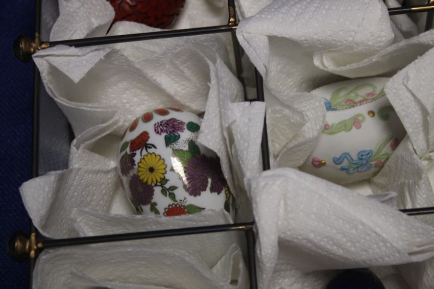 A COLLECTION OF CERAMIC DECORATIVE EGGS
