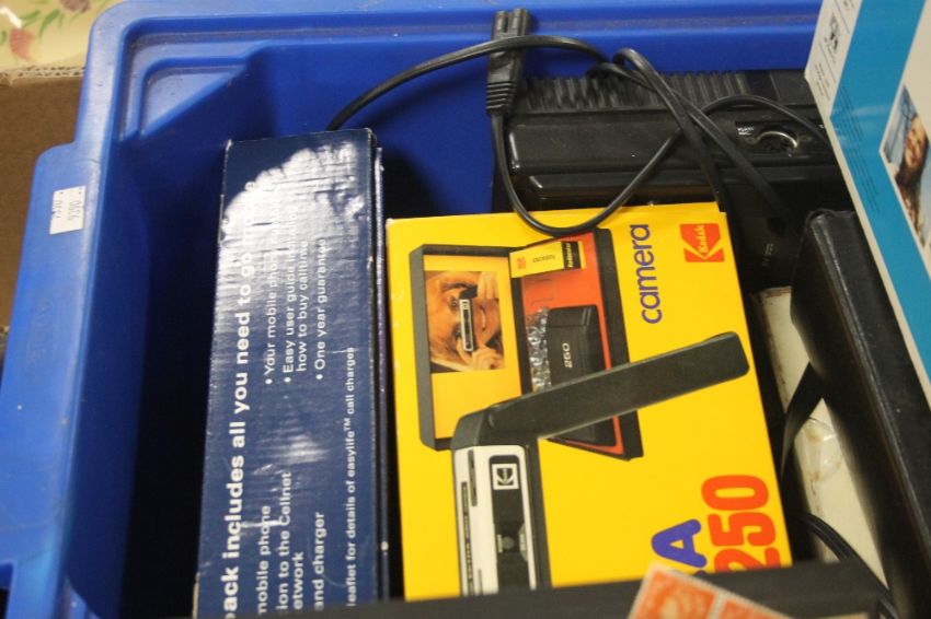 A BOXED H.P PHOTOSMART COMPACT PRINTER, BINOCULARS, CAMERAS ETC