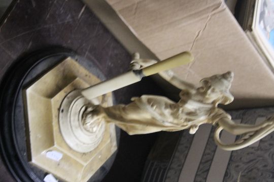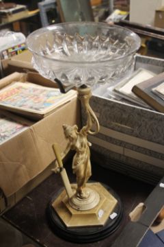 A TABLE CENTRE PIECE, A LADY ON PLINTH WITH GLASS BOWL