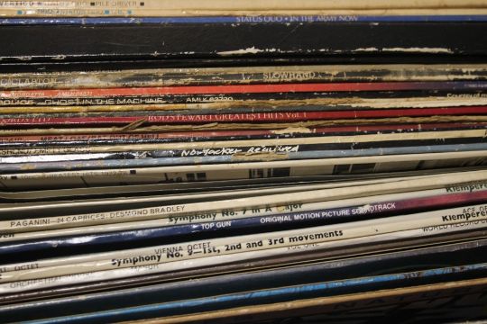 A TRAY OF RECORDS TO INCLUDE POP MUSIC STATUS QUO, BEACH BOYS ETC (TRAY/S NOT INCLUDED)
