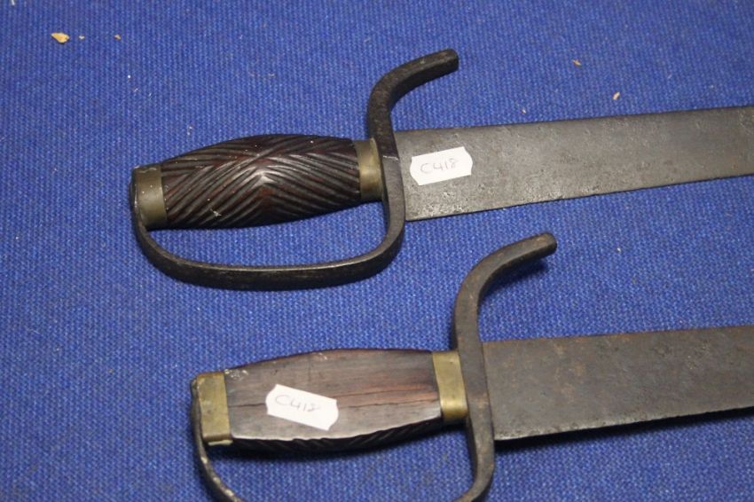 A PAIR OF VINTAGE WOODEN HANDLED SWORDS
