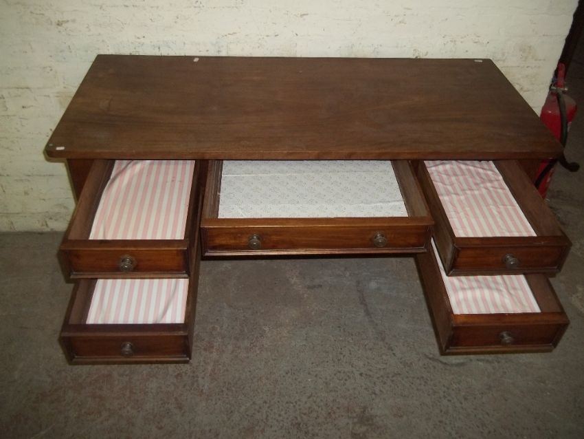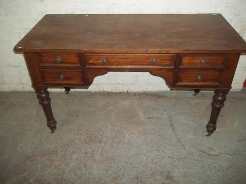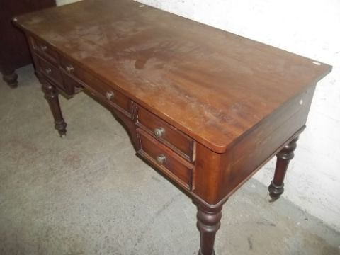 A MAHOGANY DESK WITH TURNED LEGS