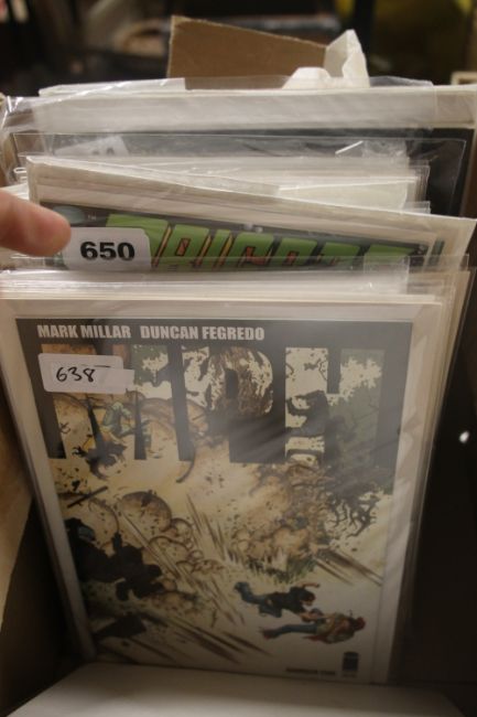 A TRAY OF MAINLY MARVEL AND DC COMICS, to include Knockout , Misplaced at 17, Left on Mission, Muirwood etc