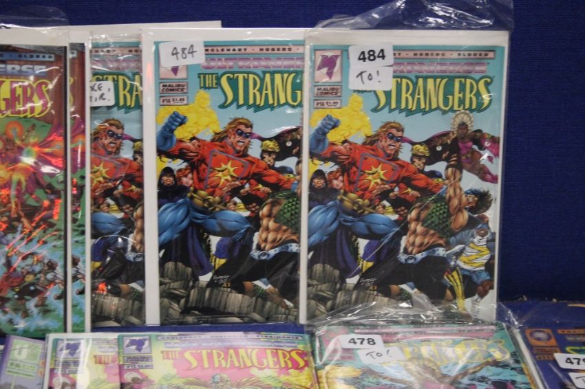 A COLLECTION OF MALIBU STRANGERS COMICS, to include 3 copies of Ultraverse and The Strangers issue 6, 5 copies of issue 8 and 3 copies of issue 9, 4 copies of issue 10, 2 of issue 11, 8 copies of issue 12, 2 of 13, 5 of 14 and 4 of 16