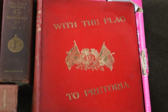THE TIMES HISTORY OF THE WAR IN SOUTH AFRICA 1899-1902, six volumes complete with all maps and plans, 2 volumes with red flag to Pretoria, 1901 and 1902, in good condition, various profusely illustrated modern German cataloguesof Militaria