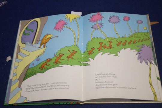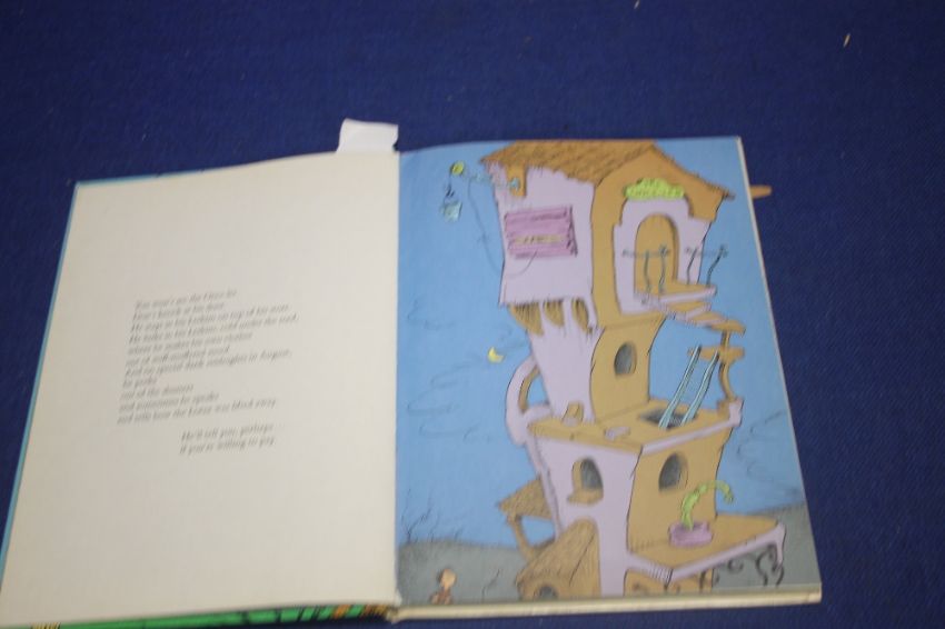DR. SEUSS - "THE LORAX", published by Random House, New York 1971. Early edition with highlighted yellow quotation of Rudolph Flesch and reference to Lake Erie in text. List of 41 books on back cover, no dustjacket.