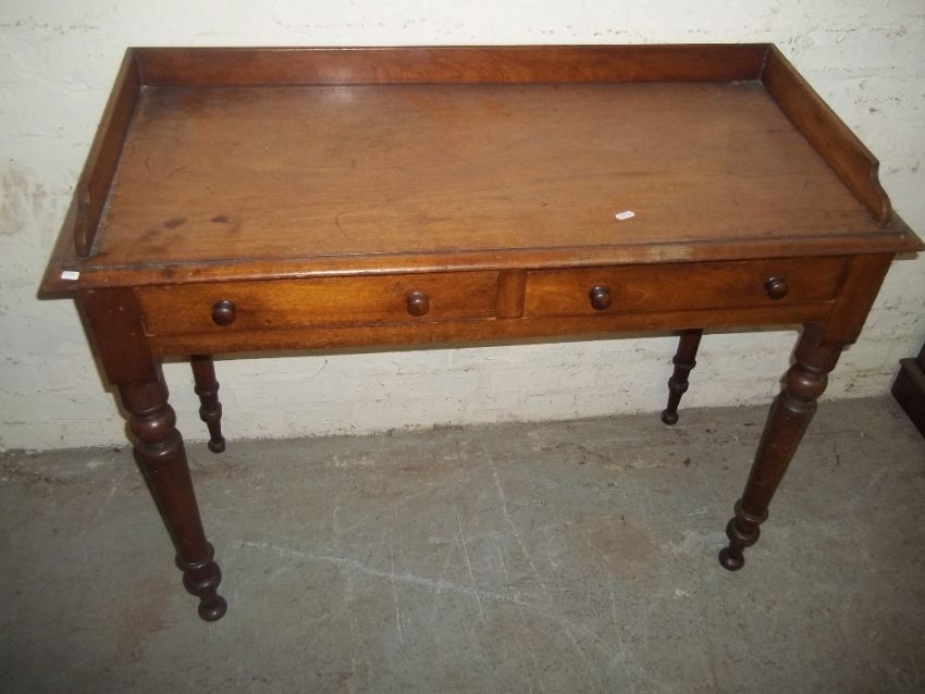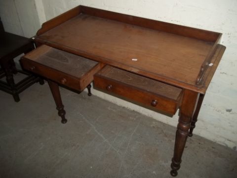 AN ANTIQUE MAHOGANY 2 DRAWER WRITING DESK