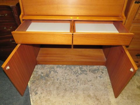 A TEAK MID CENTURY REMPLOY BUREAU W-91 CM TOGETHER WITH A BARLEY TWIST STOOL (2)