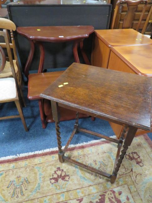 TWO MODERN TABLES AND A 1930'S OAK BARLEYTWIST EXAMPLE (3)
