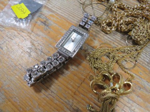 A SMALL COLLECTION OF COSTUME JEWELLERY, WRISTWATCH ETC