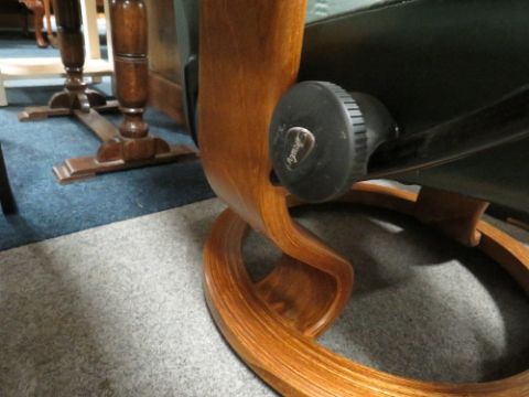 AN EKORNES STRESSLESS ARM CHAIR AND FOOTSTOOL