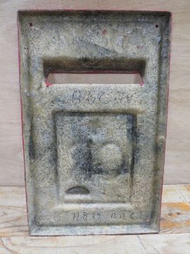 A VINTAGE FIBREGLASS TV PROP OF A POST OFFICE FRONTAGE FOR A WALL POST BOX