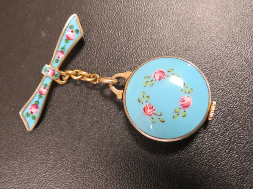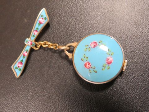 ANTIQUE ENAMELLED PENDANT BROOCH WATCH