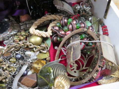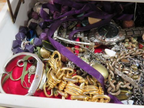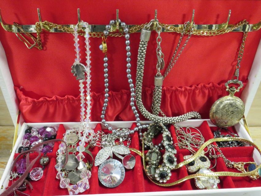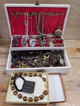 A JEWELLERY BOX AND CONTENTS