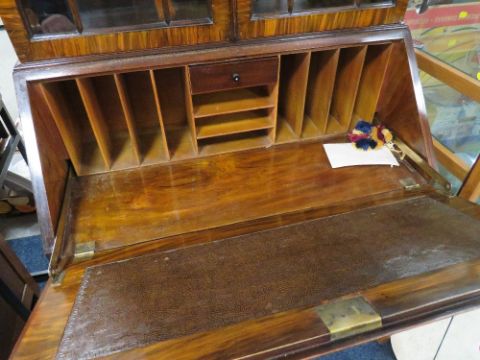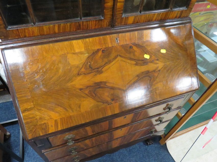 A 20TH CENTURY WALNUT BUREAU BOOKCASE H-203 W-77 CM