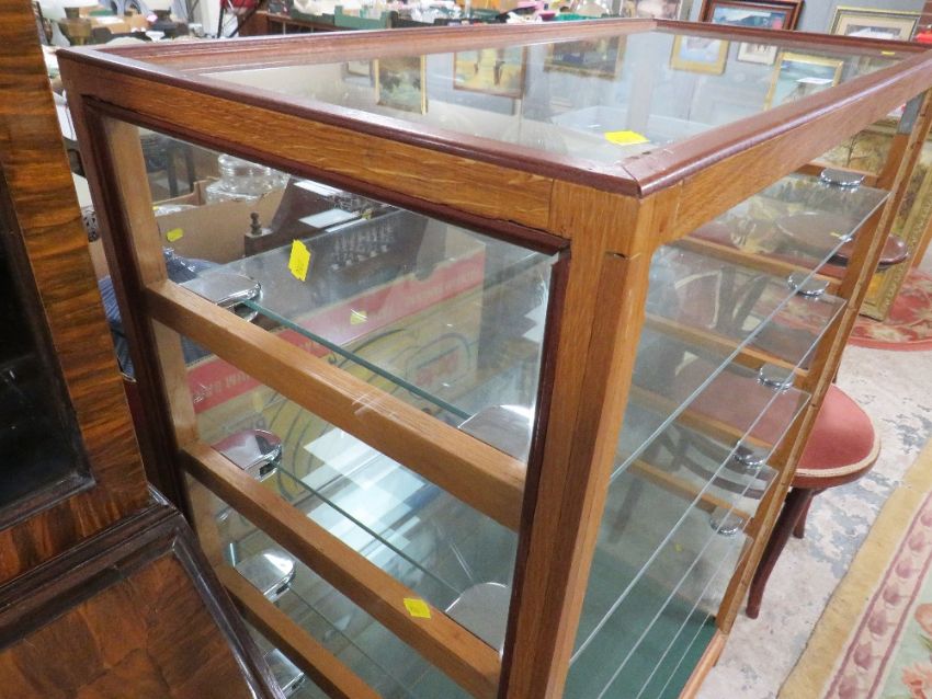A MODERN HABERDASHERY STYLE GLASS DISPLAY CABINET H-127 CM W-93 CM