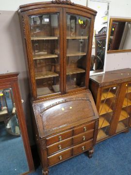 AN OAK 20TH CENTURY BUREAU BOOKCASE