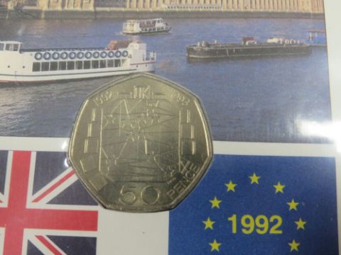 A COMMEMORATIVE 1992 BRITISH PRESIDENCY OF EUROPE 50P COIN