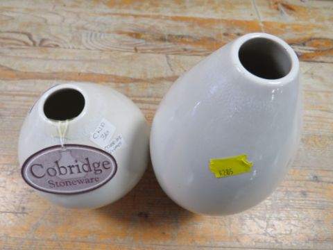 TWO LARGE WHITE COBRIDGE STONEWARE VASES