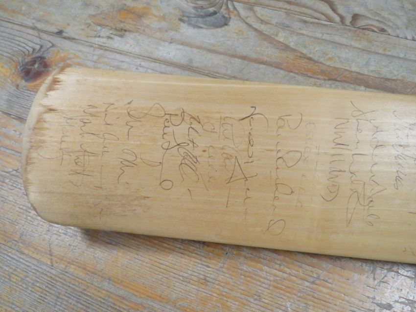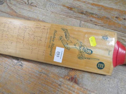 A SIGNED MATTHEW MAYNARD BENEFIT 1996 CRICKET BAT WITH AUTOGRAPHS FROM GLAMORGAN CCC AND ESSEX CCC