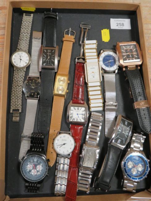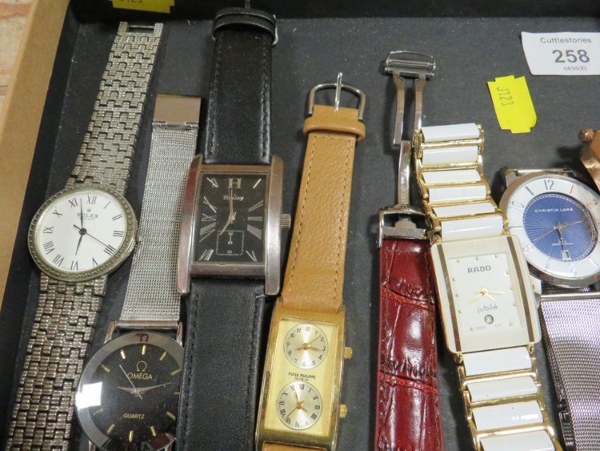 A TRAY OF ASSORTED GENTS WATCHES TO INCLUDE REPLICA BRAND NAMES