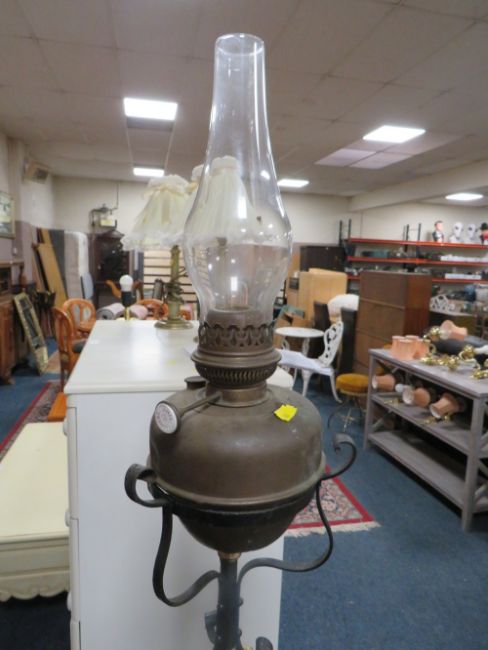 AN ANTIQUE WROUGHT LAMP STANDARD