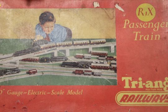 A BOXED TRIANG R1X 00 GAUGE TRAIN SET TOGETHER WITH A BOX OF SPARE TRACK ETC.