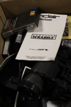 TWO TRAYS OF DIECAST VEHICLES TO INCLUDE DINKY ETC TOGETHER WITH COMPUTER CASSETTES ETC