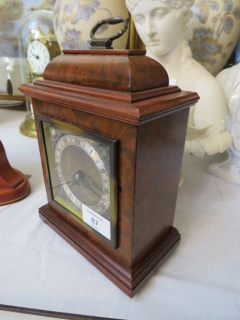 A GARRARD SMALL WALNUT MANTLE CLOCK BY ELLIOTT OF LONDON, H 23 cm