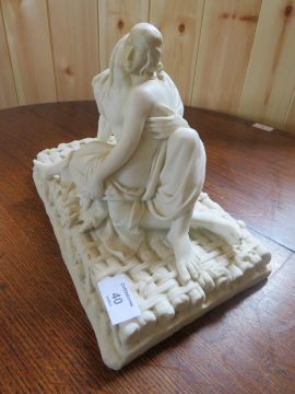 A LATE 19TH CENTURY PARIANWARE FIGURE GROUP DEPICTING TWO LOVERS ON A BAMBOO BASE, H 19 cm, W 30.5 cm