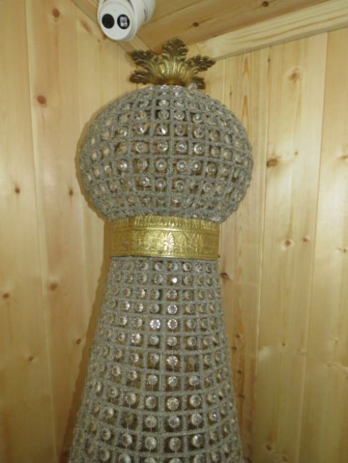 A LARGE 20TH CENTURY GILT EMPIRE STYLE TENT & BAG CHANDELIER, of French influence, with glass beads, H 152 cm, W 64 cm