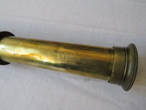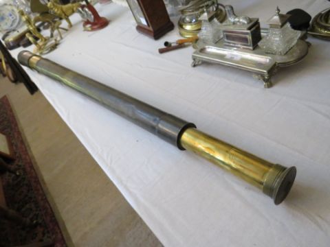 AN ANTIQUE BRASS TWO DRAW TELESCOPE