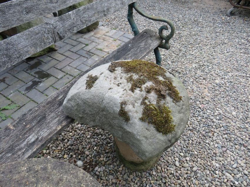 AN ANTIQUE SANDSTONE STADDLESTONE, H 64 cm