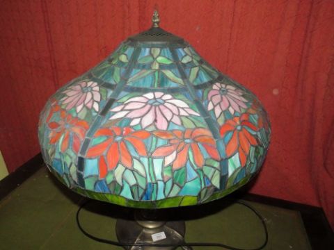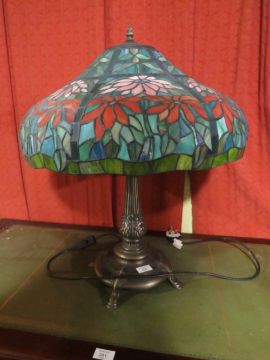 A MODERN TIFFANY STYLE TABLE LAMP