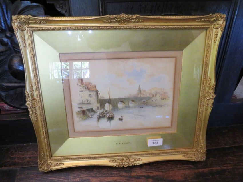 H B WINBUSH (1859 - 1910). A Continental river scene, watercolour, 20 x 25 cm