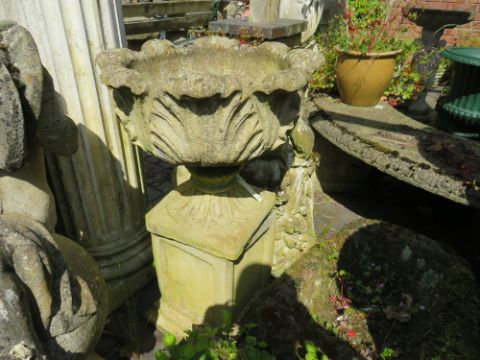 A MODERN GARDEN SHAPED URN ON SQUARED PLINTH, H 86 cm