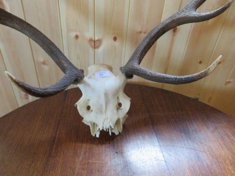 A VINTAGE SET OF WALL MOUNTED FOUR POINT ANTLERS