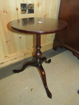 A SMALL 19TH CENTURY MAHOGANY TRIPOD WINE TABLE, H 52 cm, Dia. 37 cm